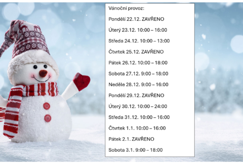 VÁNOČNÍ OTEVÍRACÍ DOBA U NÁS NA CHATĚ