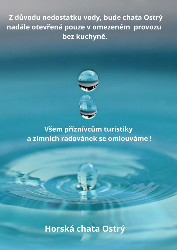 Z důvodu nedostatku vody bude chata Ostrý nadále otevřena pouze v omezeném provozu bez kuchyně!